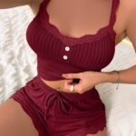 Contrast lace button Front crop cami top& Shorts Pj Set